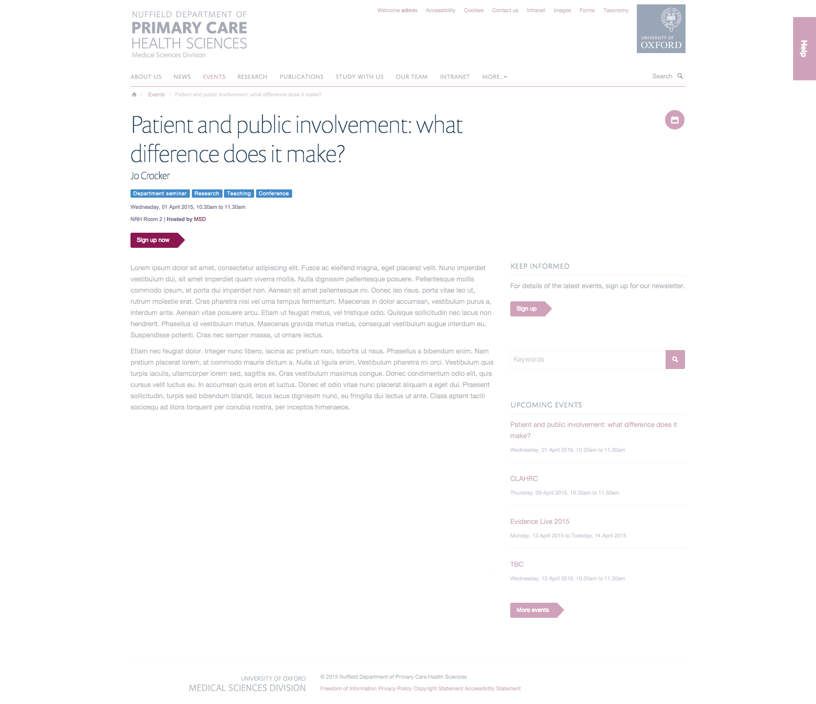 Amendments to the way that the date function works on the events, design refresh of the way that content is displayed if all fields are used, and introduction of tabbed layout. Documentation: https://fry-it.atlassian.net/wiki/display/HKB/Events+page