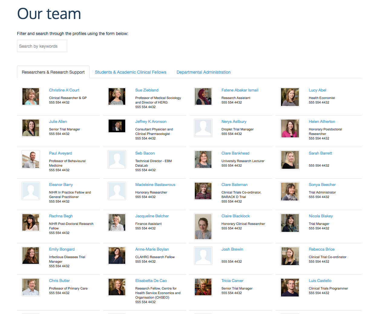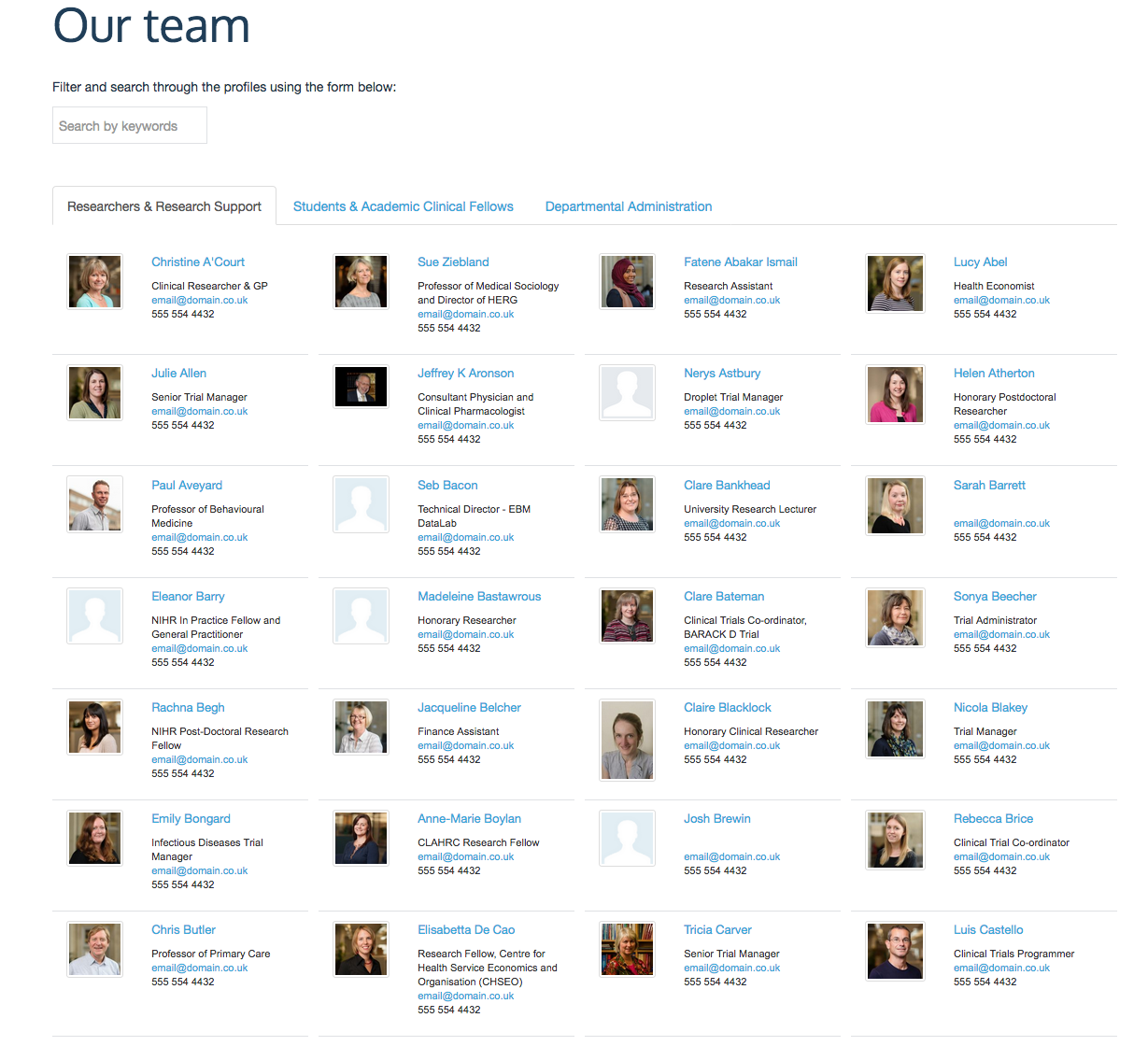 We will develop the functionality that will allow editors to define on a per team/people section basis, which fields from the individual profiles will show on the team/people landing page. We will give the ability for editors to select from multiple fields, and also provide the functionality to change the order in which these fields display on the landing page.