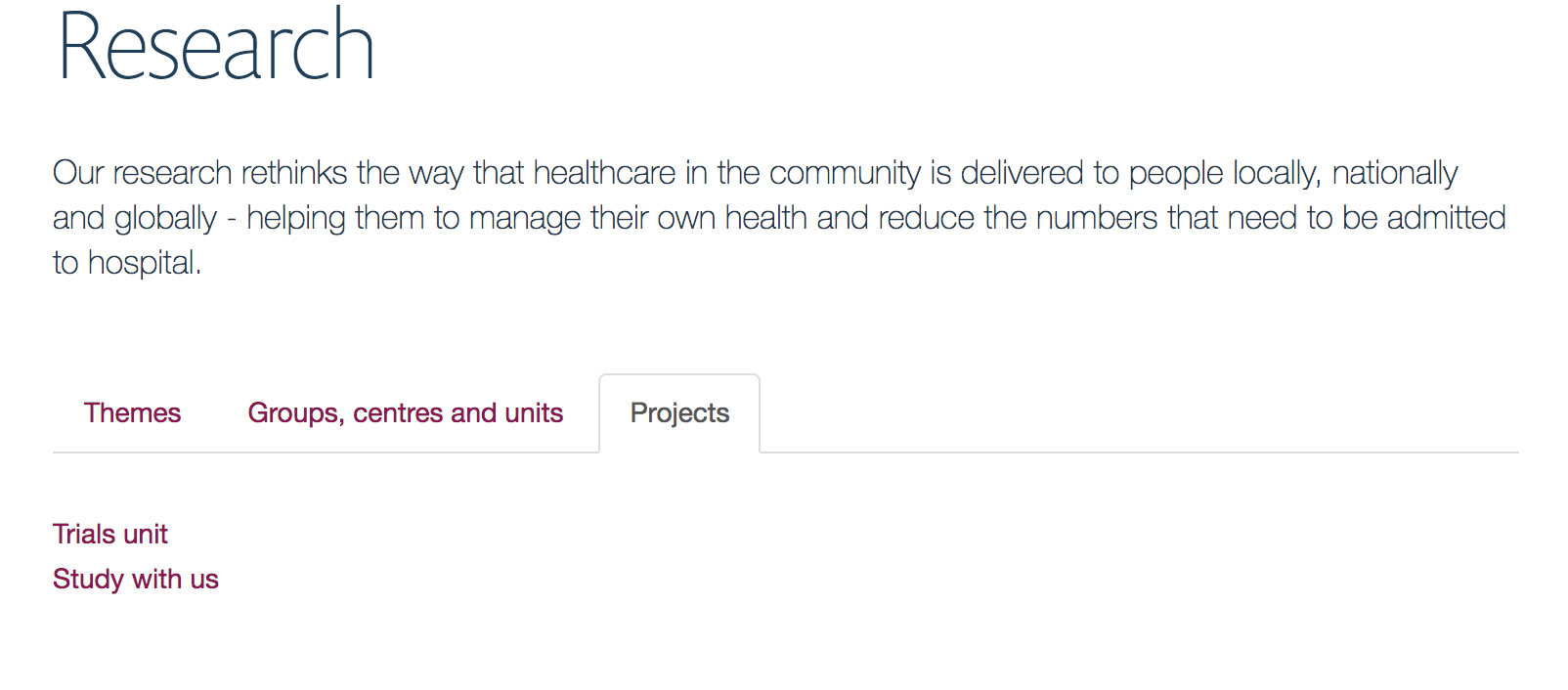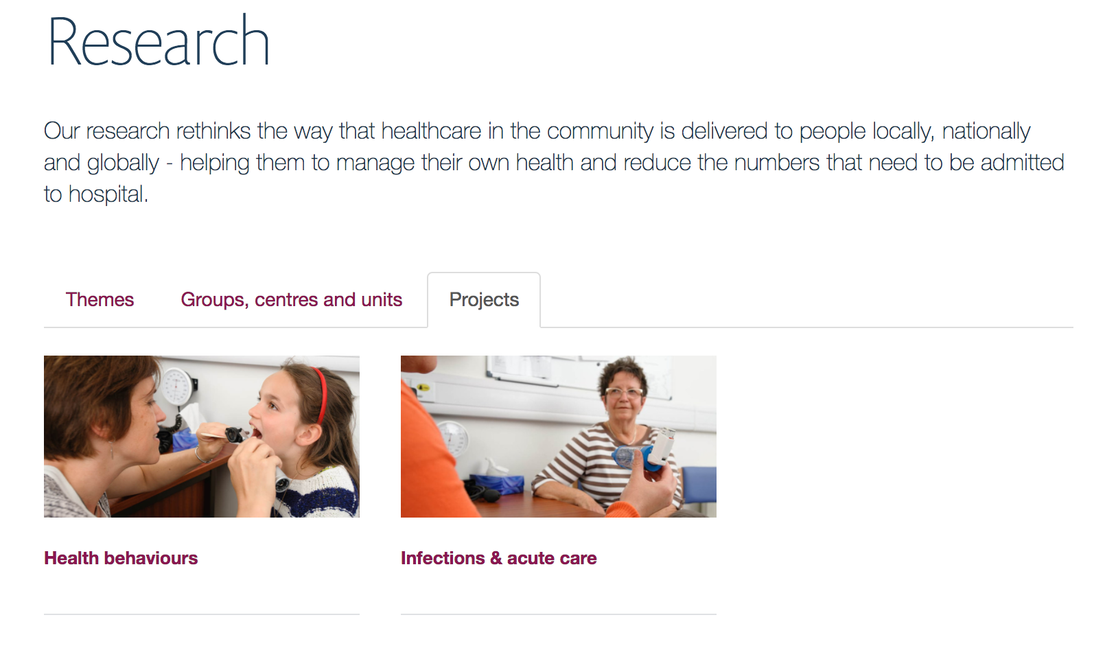 We will develop the functionality for editors to be able to singpost users to content that is not only a research group or theme from the research section landing page. We will allow editors to create a wider variety of content types within the research section and tag and categorise it, so that it can be cleanly displayed in tabs, columns or rows on the research section landing page.